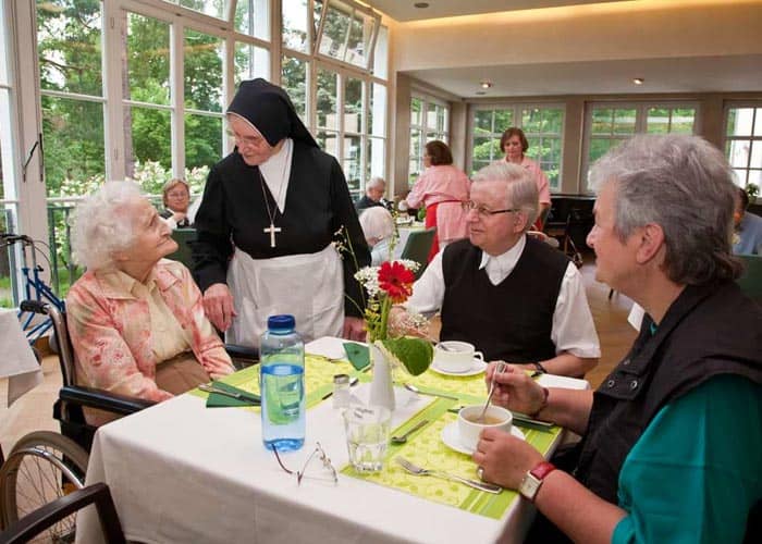 Das Leistungsspektrum des Karl-Steeb-Heims umfasst die vollstationäre Pflege für alle Pflegegrade von eins bis fünf. Darüber hinaus werden Kurzzeitpflege und, basierend auf externen Informationen, auch Tagespflegeangebote zur Entlastung pflegender Angehöriger bereitgestellt. Die professionelle Betreuung wird durch qualifiziertes Fachpersonal sichergestellt, das eine aktivierende und ganzheitliche Pflegephilosophie verfolgt. Ein besonderer Wert wird auf die Verpflegung gelegt: Die Mahlzeiten werden täglich frisch in der hauseigenen Küche zubereitet. Der Speisesaal, der durch eine große Glasfront einen direkten Blick in den Garten bietet, dient als zentraler Treffpunkt für die Bewohner und wird regelmäßig für kulturelle Veranstaltungen genutzt. Das kulturelle Angebot ist vielfältig und umfasst unter anderem Konzerte, Feste und kreative Aktivitäten, die das soziale Miteinander fördern und zur Lebensqualität beitragen. Die Anbindung an den Orden der Barmherzigen Schwestern von Verona ermöglicht zudem eine seelsorgerische Begleitung und die Feier von Gottesdiensten in der hauseigenen Kapelle. Die Kombination aus historischem Ambiente, umfassender Pflege und einem breiten Spektrum an Freizeit- und Betreuungsangeboten macht das Karl-Steeb-Heim zu einer Einrichtung, die den individuellen Bedürfnissen älterer Menschen in besonderer Weise Rechnung trägt und ein geborgenes Zuhause bietet. Die Lage in einer ruhigen, grünen Umgebung trägt zusätzlich zur hohen Wohn- und Lebensqualität bei.